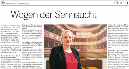 Von Januar 2017 bis August 2023 war ich Chorleiterin und Stimmbildnerin des Kölner Frauen-Shanty-Chores Die Brausen